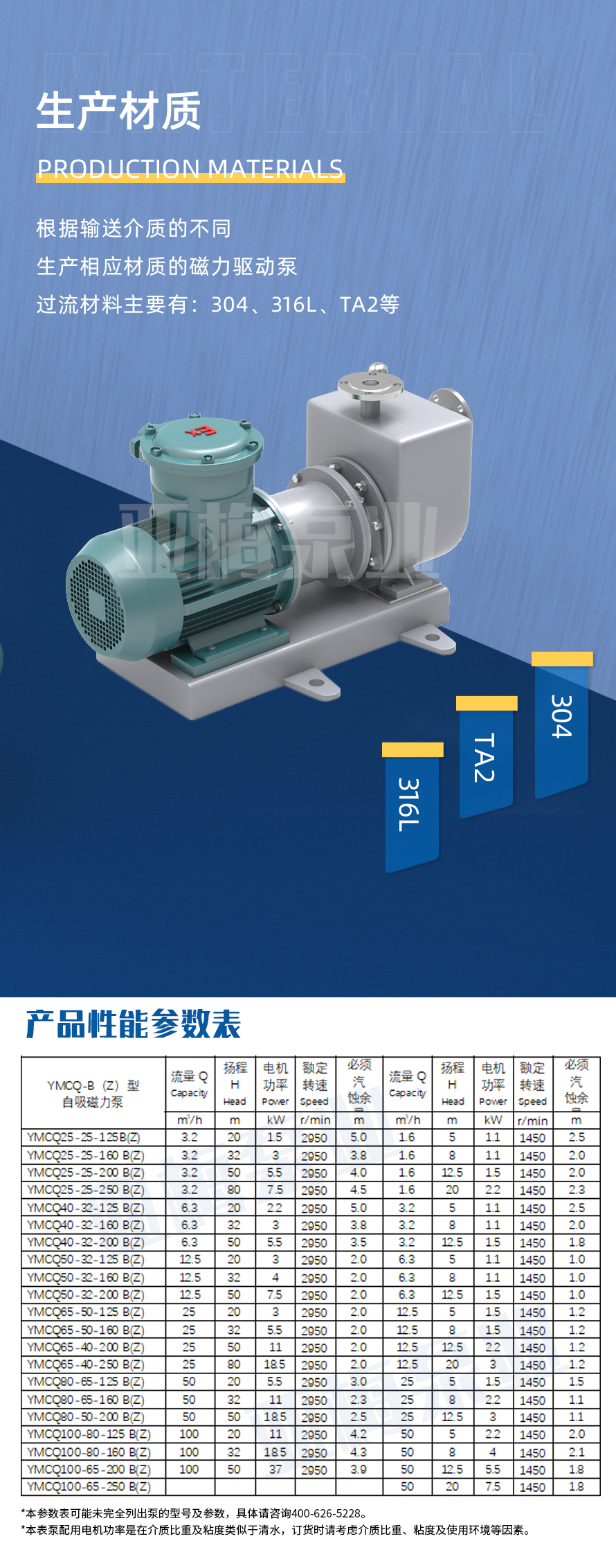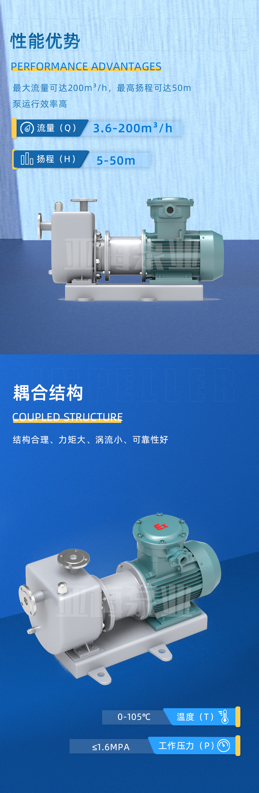 YMCQ-B系列磁力驅動泵是將永磁聯軸器的工作原理用于離心泵的高科技產品,設計合理,工藝先進,具有全密封,無泄漏,耐腐蝕等特點。