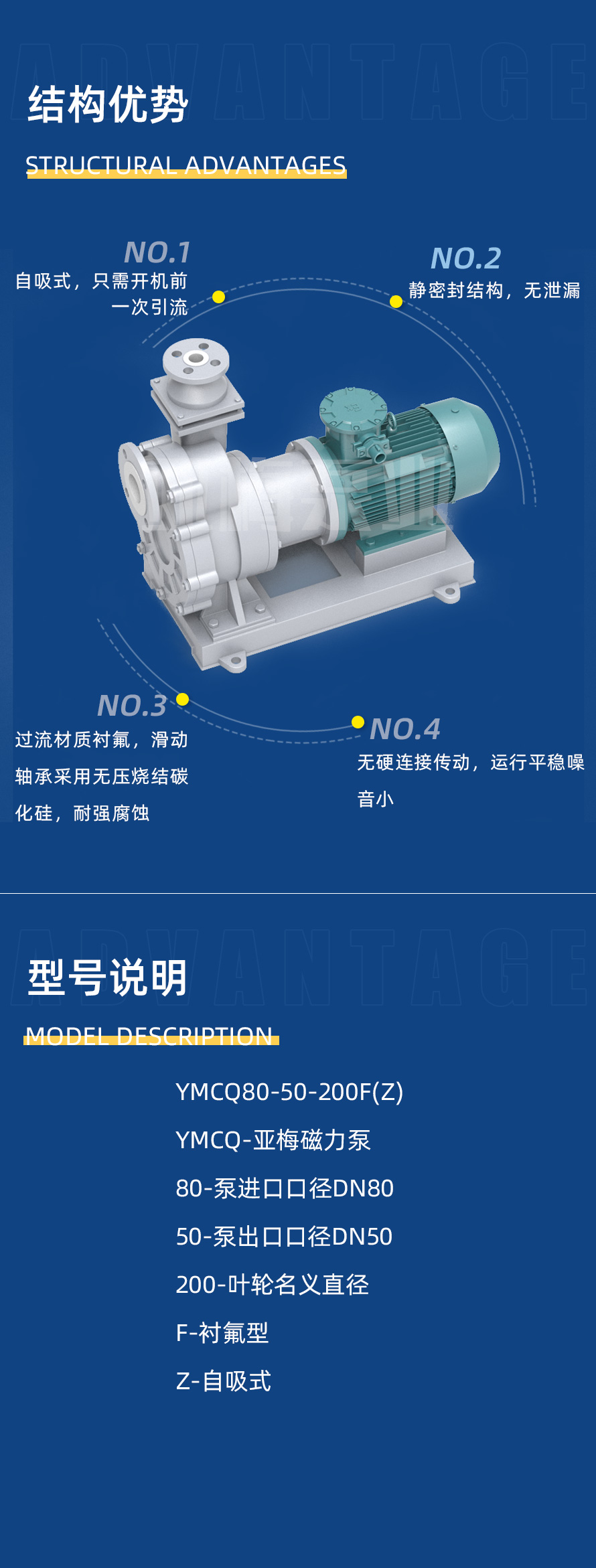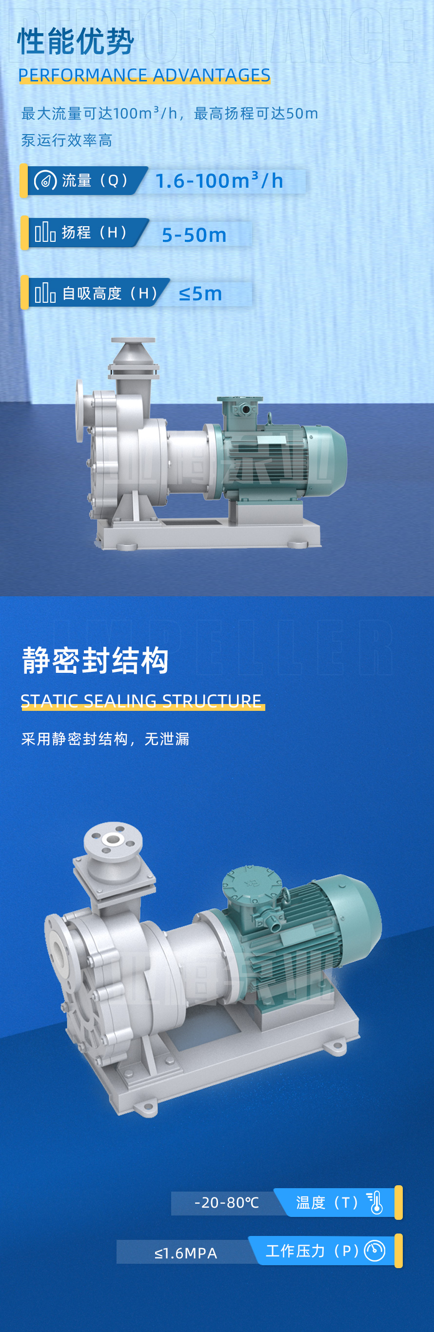 YMCQ-B系列磁力驅動泵是將永磁聯軸器的工作原理用于離心泵的高科技產品,設計合理,工藝先進,具有全密封,無泄漏,耐腐蝕等特點。